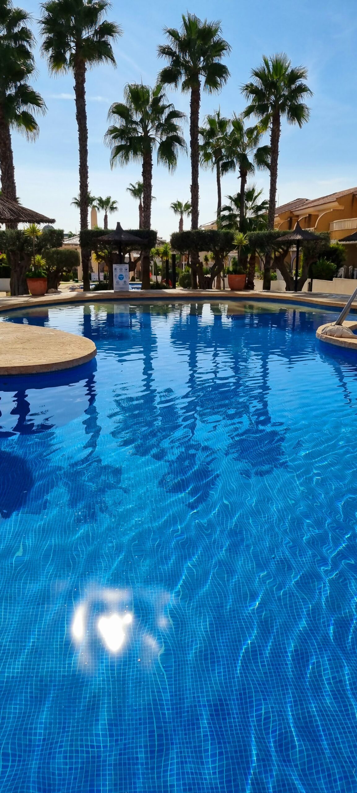 Hele boligkomplekset ligger inne på et lukket privat område, med flere felles svømmebasseng og grøntarealer – se bilder!