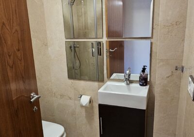 Gjennomgående høy standard, med marmor-fliser på badene, lydløs integrert klimaanlegg (ingen synlige maskiner på veggene), garderobeskap i kirsebærtre m.m.