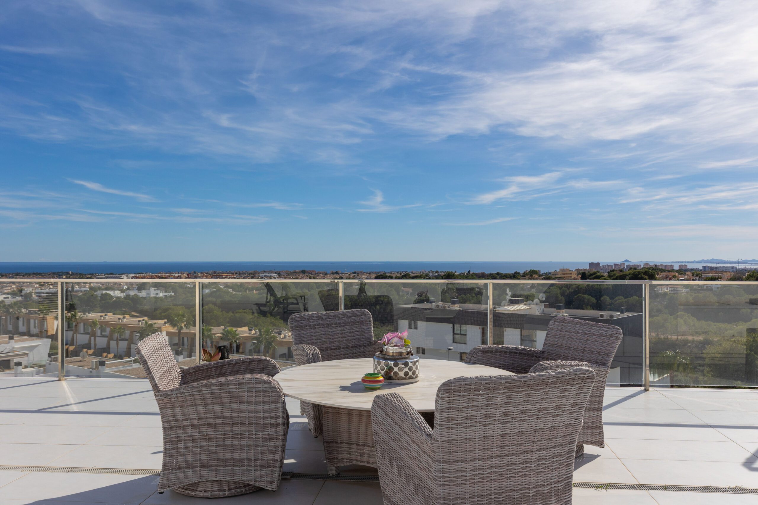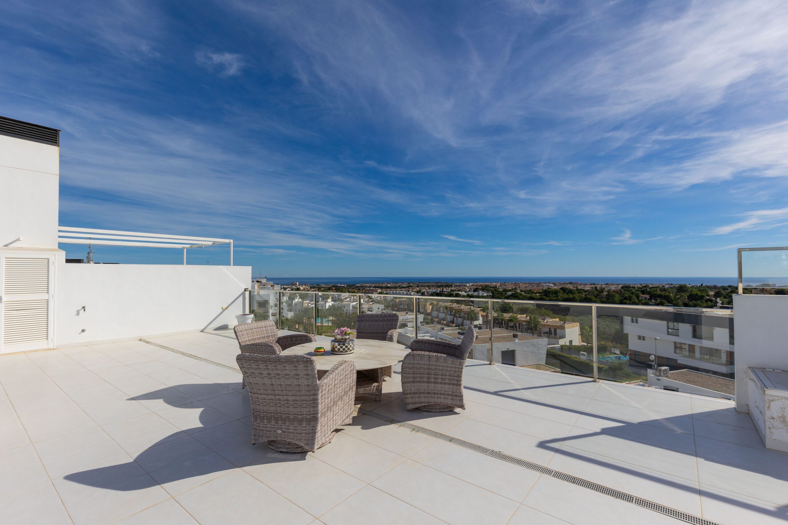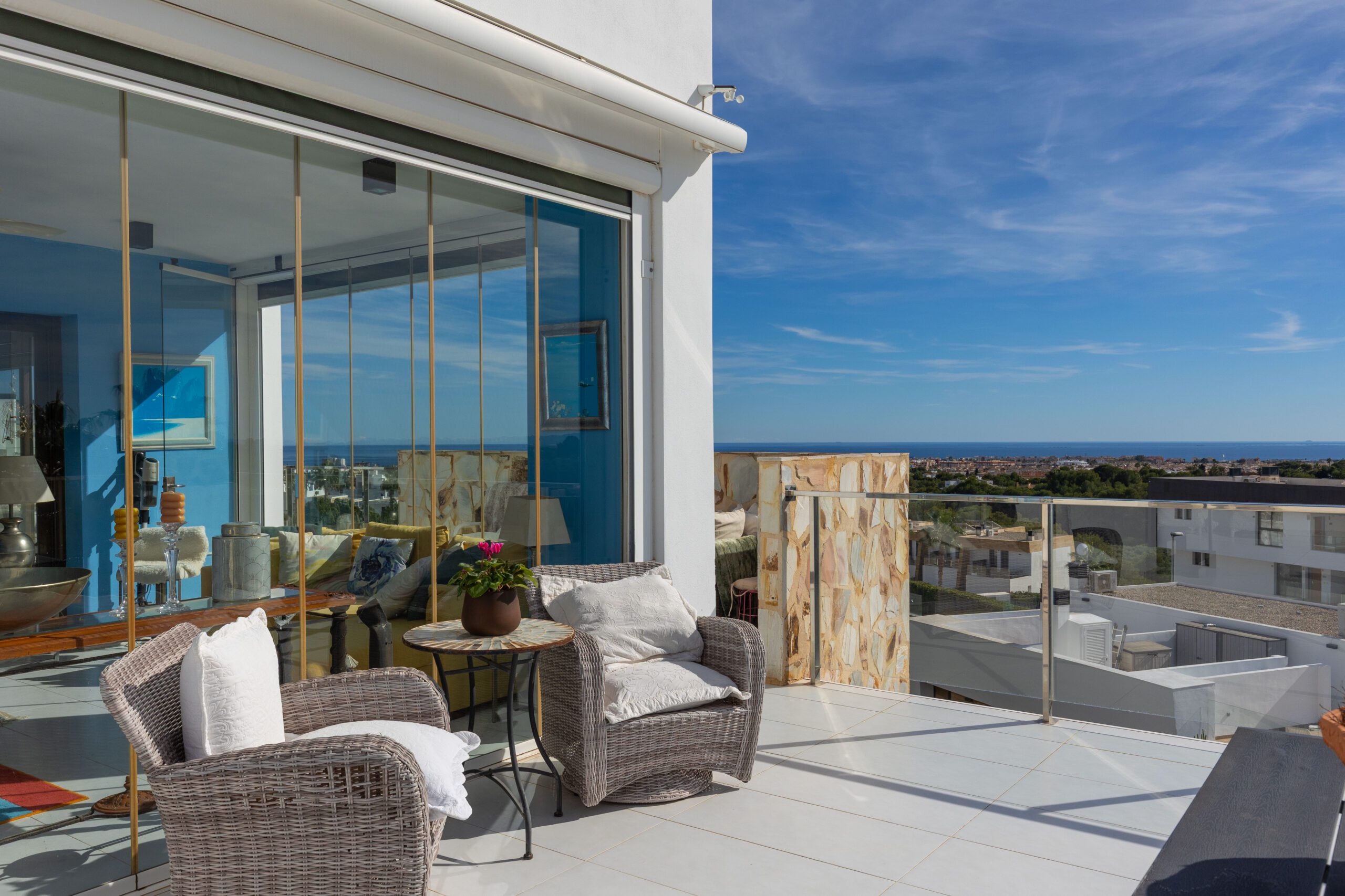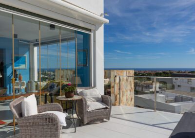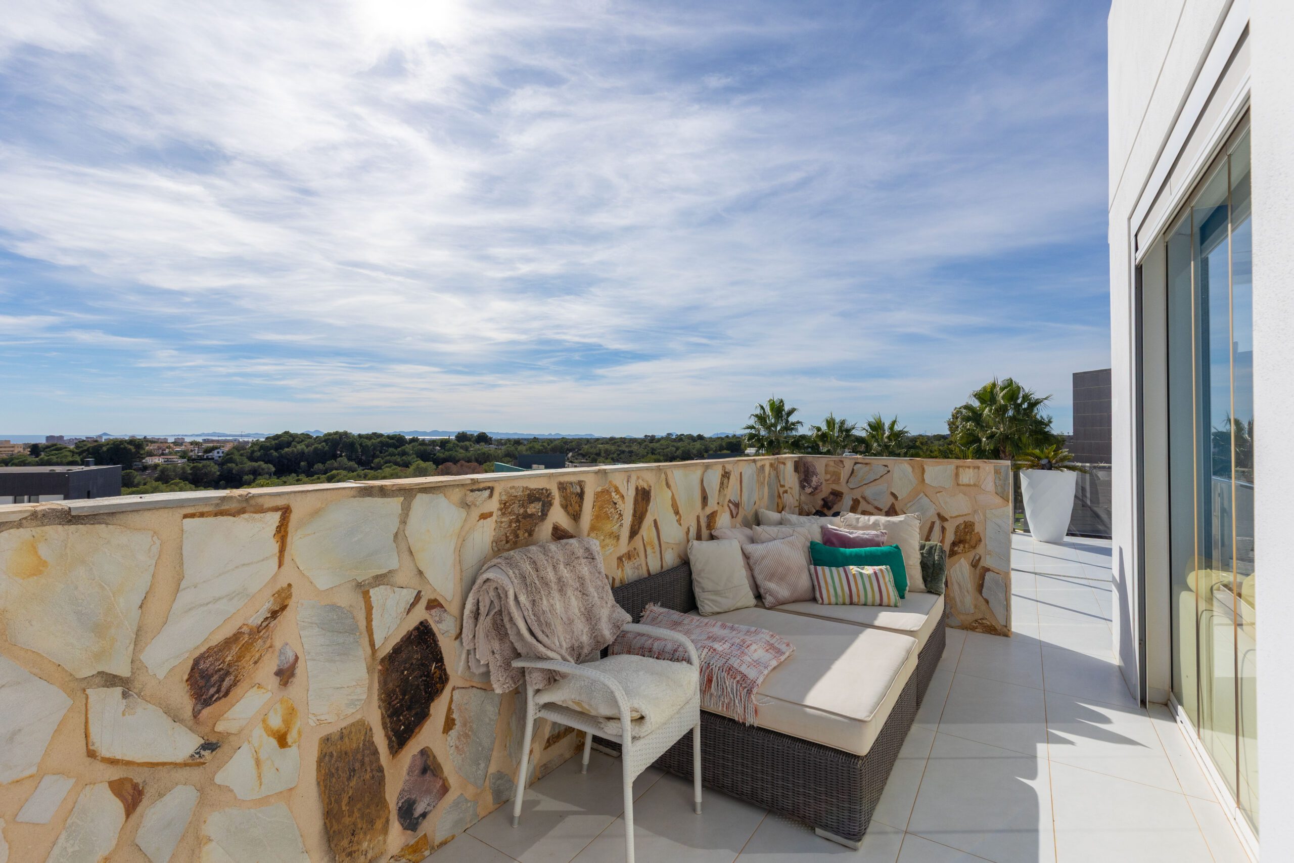 En sjelden godbit er nå på markedet, beliggende helt øverst på tomten til KO SAMUI med fantastisk utsikt til Middelhavet fra den store terrassen utenfor stuen, den store sørvendte hjørneterrassen, samt fra en gedigen takterrasse – se bilder!