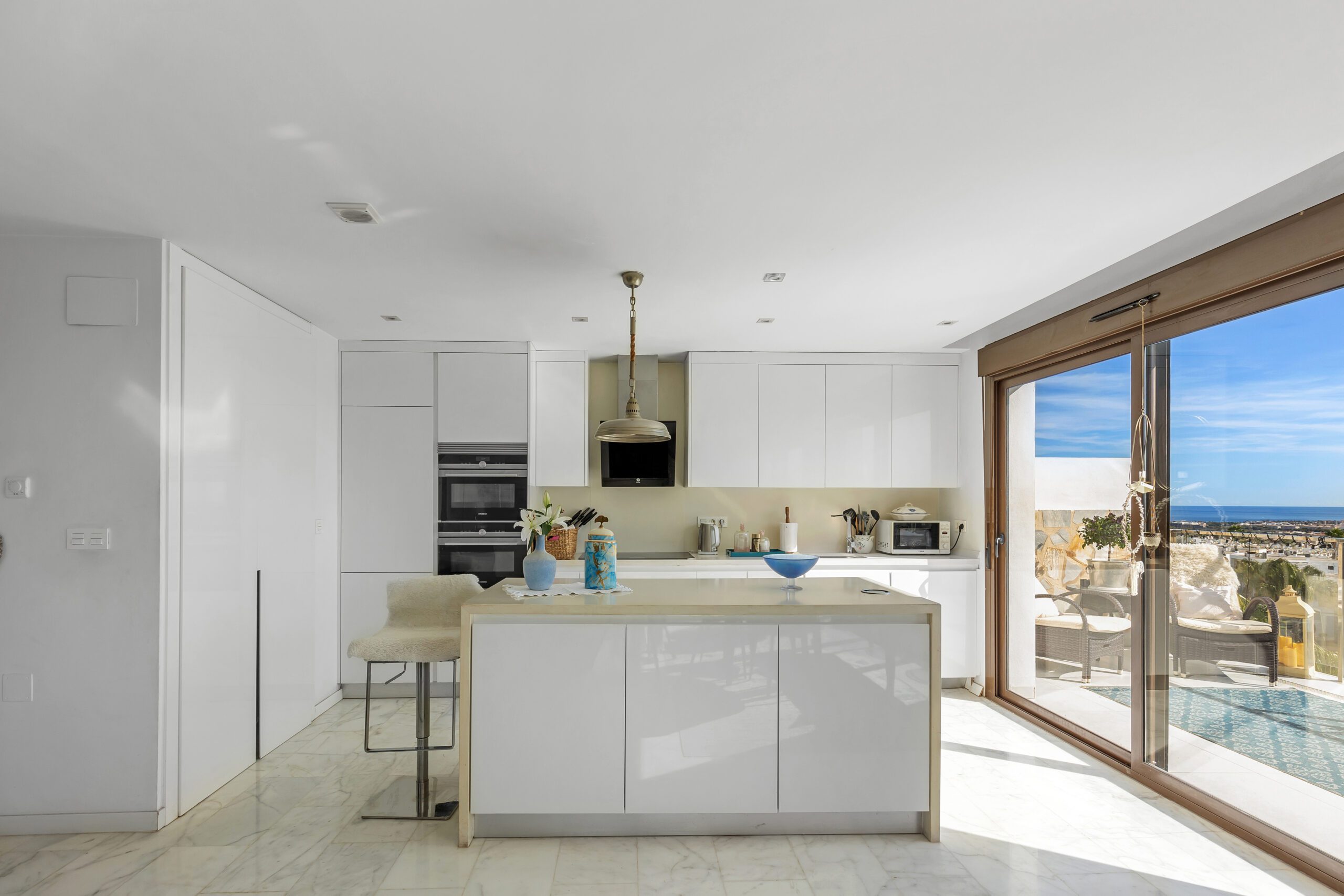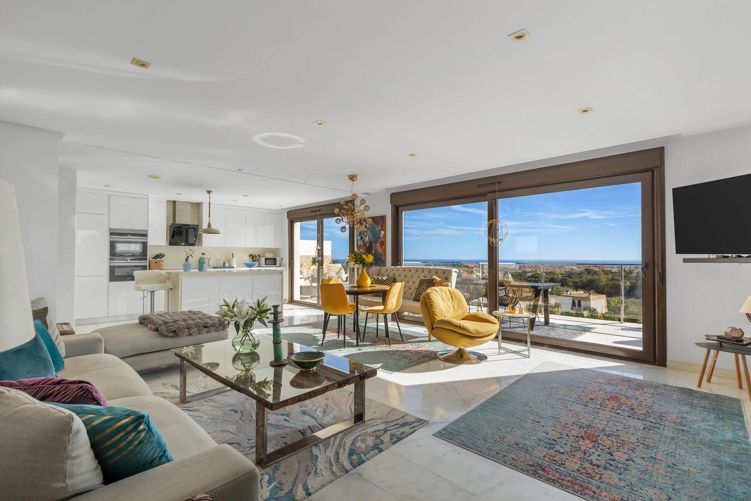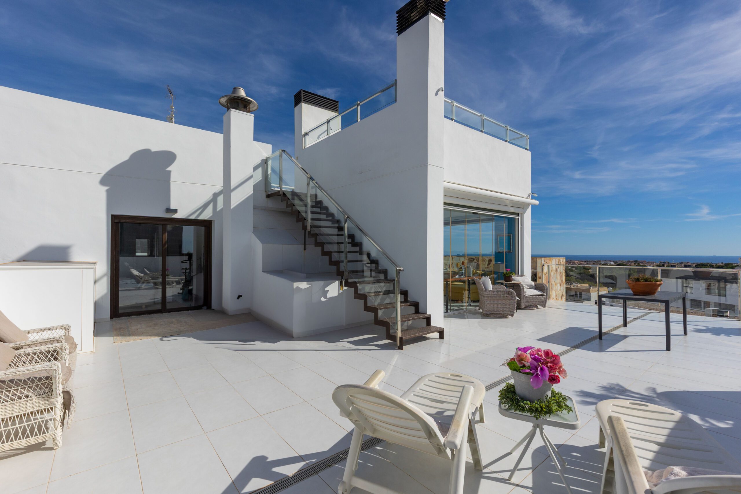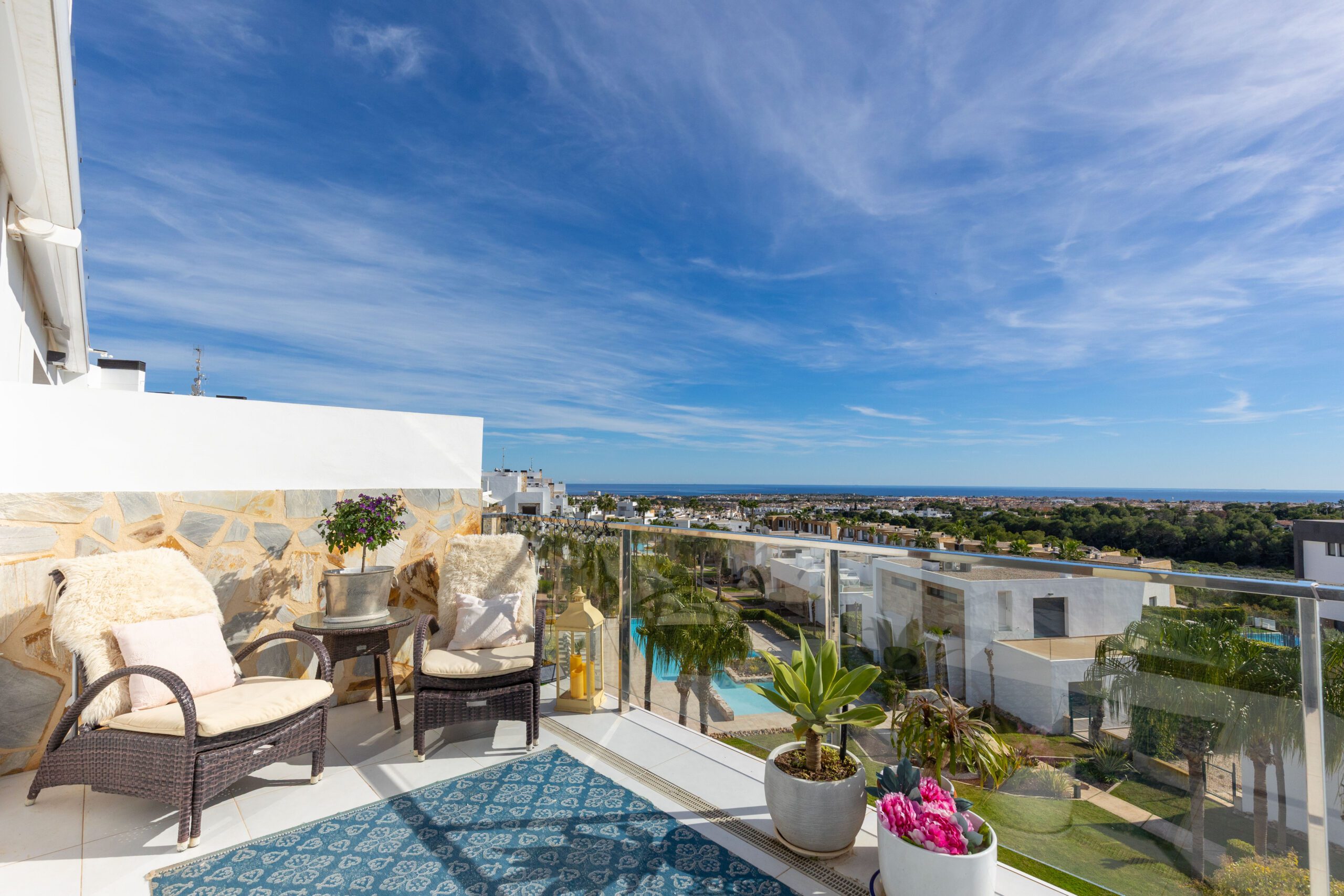 En sjelden godbit er nå på markedet, beliggende helt øverst på tomten til KO SAMUI med fantastisk utsikt til Middelhavet fra den store terrassen utenfor stuen, den store sørvendte hjørneterrassen, samt fra en gedigen takterrasse – se bilder!